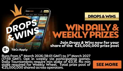| Slot Tournaments | Drops & Wins (Pragmatic Play): weekly slot tournaments and daily prize drops on selected games |